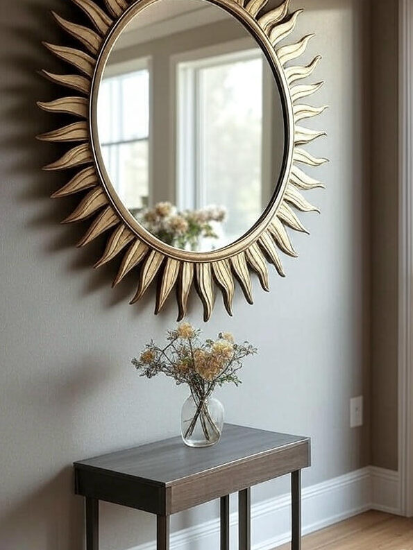 Round mirrors, sunburst designs, or even antique finishes can add elegance without breaking the bank.